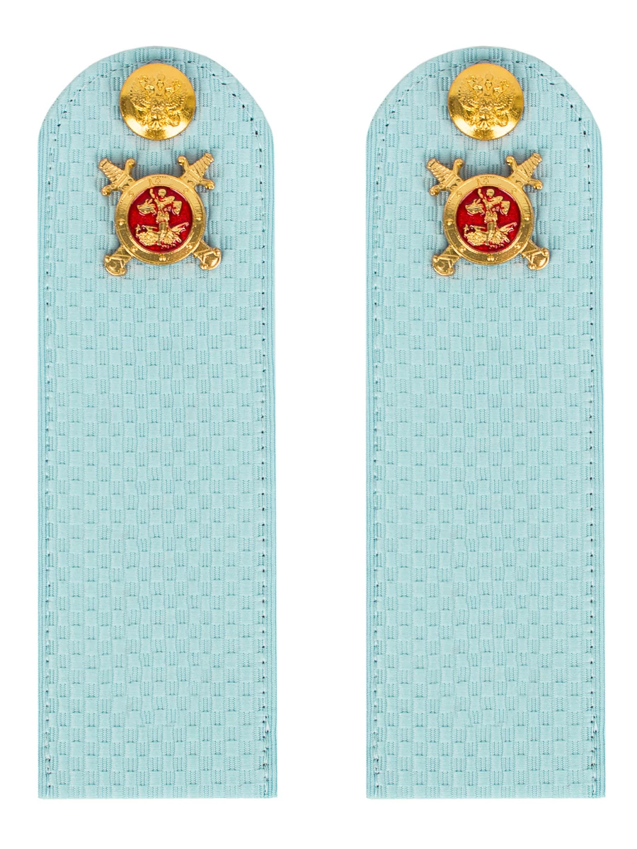 Размер 14 см на 5,5 см. Толщина 1 мм. Погоны МВД ткань жаккард голубого цвета, основа пластик. Погоны идут сразу в сборе с металлической фурнитурой из латуни и застежкой кляммером. При креплении жестких погон необходимо использовать застежку-кляймер. Необходимо продеть ленту погона в специальные петли на уставной форме.
