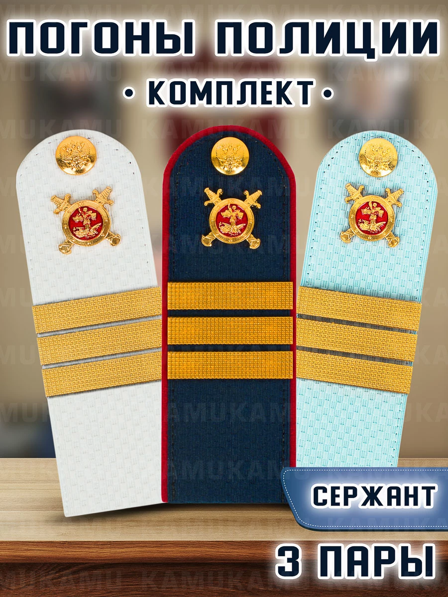 Погоны Полиции комплект 3 шт. КАРТОН Звание Сержант 14х5,5см