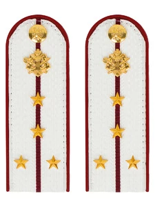 Размер 14 см на 5,5 см. Толщина 1 мм. Погоны ФСИН ткань жаккард белый цвета с красным просветом на пластиковой основе. Погоны идут сразу в сборе с металлической фурнитурой из латуни и застежкой кляммером. При креплении жестких погон необходимо использовать застежку-кляймер. Необходимо продеть ленту погона в специальные петли на уставной форме.