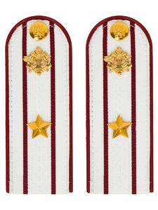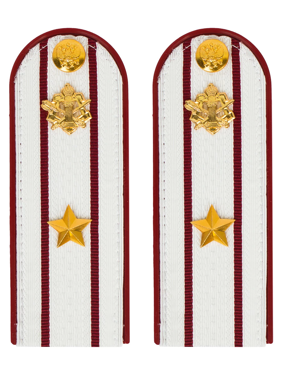 Размер 14 см на 5,5 см. Толщина 1 мм. Погоны ФСИН ткань жаккард белого цвета с красным просветом на пластиковой основе. Погоны идут сразу в сборе с металлической фурнитурой из латуни и застежкой кляммером. При креплении жестких погон необходимо использовать застежку-кляймер. Необходимо продеть ленту погона в специальные петли на уставной форме.