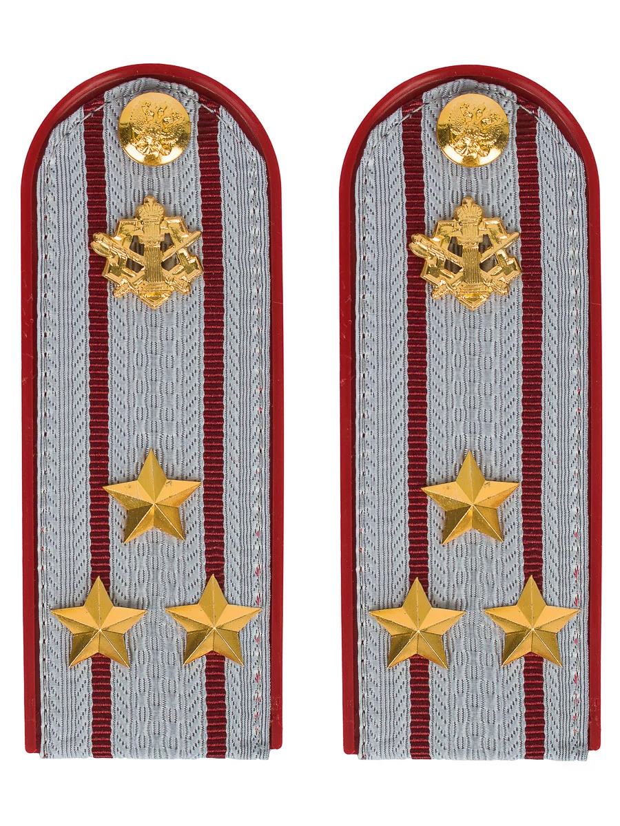 Размер 14 см на 5,5 см. Толщина 1 мм. Погоны ФСИН ткань жаккард серого  цвета с красным просветом на пластиковой основе. Погоны идут сразу в сборе с металлической фурнитурой из латуни и застежкой кляммером. При креплении жестких погон необходимо использовать застежку-кляймер. Необходимо продеть ленту погона в специальные петли на уставной форме.