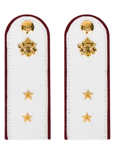 Размер 14 см на 5,5 см. Толщина 1 мм. Погоны ФСИН ткань жаккард белого цвета с красным просветом на картонной основе. Погоны идут сразу в сборе с металлической фурнитурой из латуни и застежкой кляммером. При креплении жестких погон необходимо использовать застежку-кляймер. Необходимо продеть ленту погона в специальные петли на уставной форме.