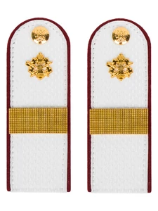 Размер 14 см на 5,5 см. Толщина 1 мм. Погоны ФСИН ткань жаккард белого цвета с красным просветом на картонной основе. Погоны идут сразу в сборе с металлической фурнитурой из латуни и застежкой кляммером. При креплении жестких погон необходимо использовать застежку-кляймер. Необходимо продеть ленту погона в специальные петли на уставной форме.