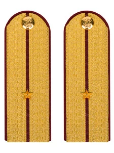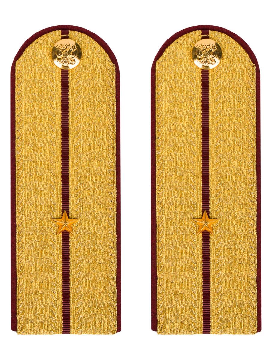 Погоны ФСИН парадные Младший Лейтенант картон цвет золотой, Размер 14 см на 5,5 см. Толщина 1 мм. Погоны ФСИН ткань жаккард золотого цвета с красным просветом на картонной основе. Погоны идут сразу в сборе с металлической фурнитурой из латуни и застежкой кляммером. При креплении жестких погон необходимо использовать застежку-кляймер. Необходимо продеть ленту погона в специальные петли на уставной форме.