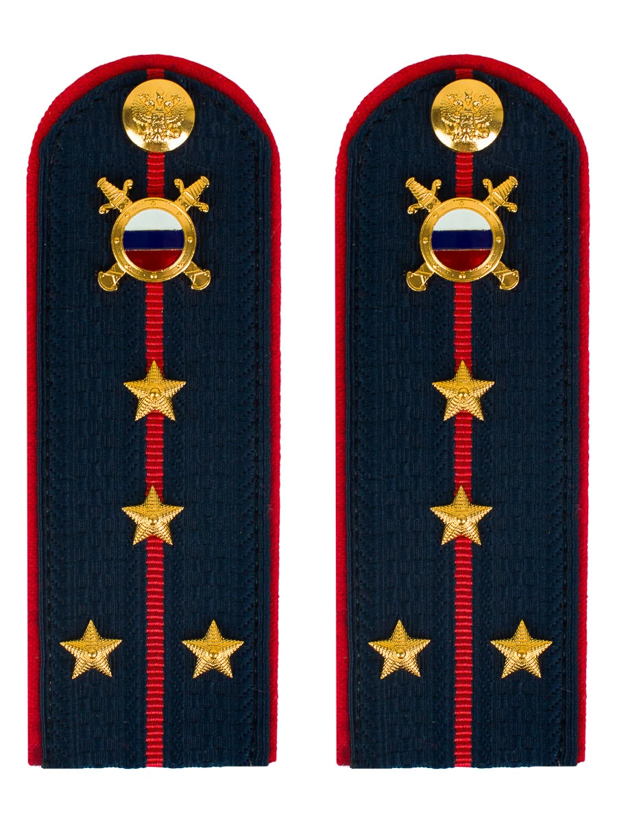 Размер 13 см на 5 см. Толщина 1 мм. Погоны МВД синие ткань жаккард темно-синего цвета, основа картон. Погоны идут сразу в сборе с металлической фурнитурой из латуни и застежкой кляммером. При креплении жестких погон необходимо использовать застежку-кляймер. Необходимо продеть ленту погона в специальные петли на уставной форме.