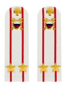 Размер 13,5 см на 4,5 см. Толщина 1 мм. Погоны МВД белые ткань жаккард белого цвета, основа пластик. Погоны идут сразу в сборе с металлической фурнитурой из латуни и застежкой кляммером. При креплении жестких погон необходимо использовать застежку-кляймер. Необходимо продеть ленту погона в специальные петли на уставной форме.