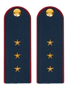 Погоны ФСИН на китель звание Старший Прапорщик 14х5 см, Погоны ФСИН ткань жаккард темно-синяя, цвета на картонной основе. Погоны идут сразу в сборе с металлической фурнитурой из латуни и застежкой кляммером. При креплении жестких погон необходимо использовать застежку-кляймер. Необходимо продеть ленту погона в специальные петли на уставной форме.
