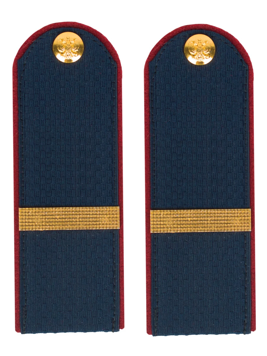 Размер 14 см на 5 см. Толщина 1 мм. Погоны МВД ткань жаккард синего цвета, основа картон. Погоны идут сразу в сборе с металлической фурнитурой из латуни.