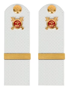 Размер 13,5 см на 4,5 см. Толщина 1 мм. Погоны МВД белые ткань жаккард белого цвета, основа картон. Погоны идут сразу в сборе с металлической фурнитурой из латуни и застежкой кляммером. При креплении жестких погон необходимо использовать застежку-кляймер. Необходимо продеть ленту погона в специальные петли на уставной форме.