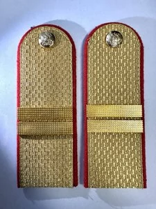 Погоны МВД ткань жакард золотого цвета, основа картон. Погоны идут сразу в сборе с металлической фурнитурой из латуни и застежкой кляммером. При креплении жестких погон необходимо использовать застежку-кляймер.