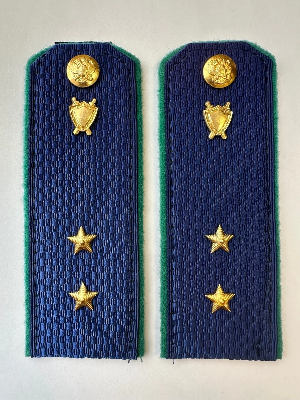 Погоны Прокуратура синие ткань жаккард темно-синего цвета, основа картон. Погоны идут сразу в сборе с металлической фурнитурой из латуни и застежкой кляммером. При креплении жестких погон необходимо использовать застежку-кляймер. Необходимо продеть ленту погона в специальные петли на уставной форме.