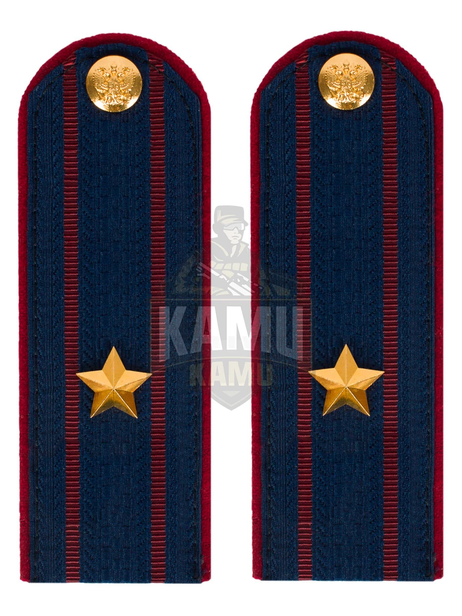 Размер 14 см на 5,5 см. Толщина 1 мм. Погоны ФСИН ткань жаккард темно-синего цвета с зеленым просветом на картонной основе. Погоны идут сразу в сборе с металлической фурнитурой из латуни и застежкой кляммером. При креплении жестких погон необходимо использовать застежку-кляймер. Необходимо продеть ленту погона в специальные петли на уставной форме.
