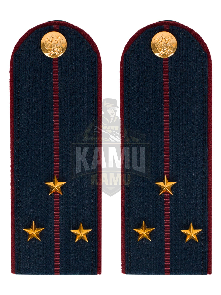 Размер 14 см на 5,5 см. Толщина 1 мм. Погоны ФСИН ткань жаккард темно-синего цвета с зеленым просветом на картонной основе. Погоны идут сразу в сборе с металлической фурнитурой из латуни и застежкой кляммером. При креплении жестких погон необходимо использовать застежку-кляймер. Необходимо продеть ленту погона в специальные петли на уставной форме.