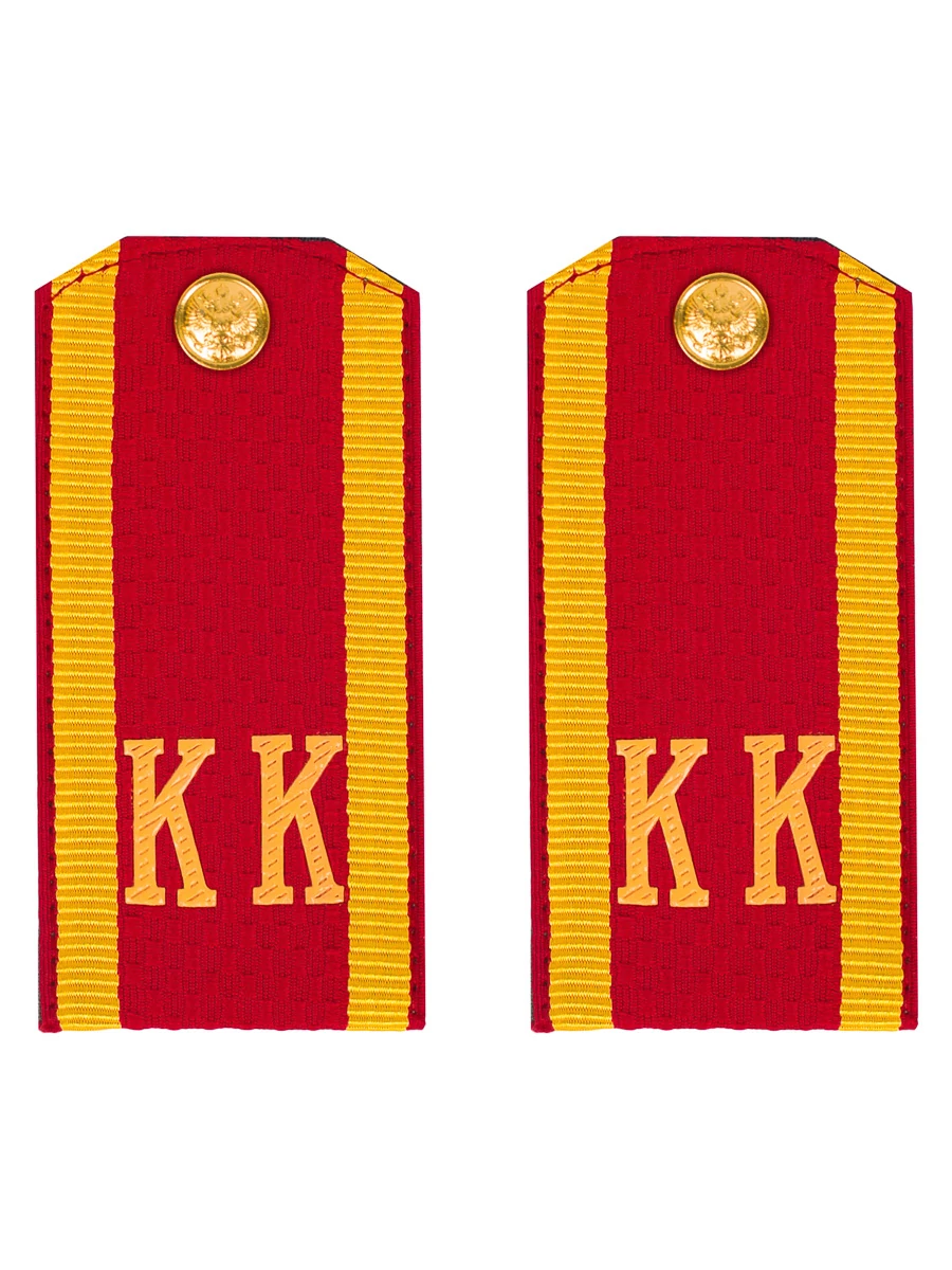 Погоны кадетские КК, галунные с фурнитурой в комплекте. Форма погон: Трапеция. Поле: Красное Длина: 10 см. Ширина: 5 см. Материал: Галун, картон ,пластизоль. Курсантские погоны КК для Минобрнауки подходят как к форме кадетов для мальчиков, так и к форме кадетов для девочек. Основные характеристики погон красных КК: длинна изделия составляет 10 см; при изготовлении применяется пластизоль; имеют высокий уровень износостойкости; многоразовое использование; со временем не меняют цвет и уровень прочности; нанесена надпись “КК” и две линии по бокам желтого цвета; имеют форму шестиугольника.