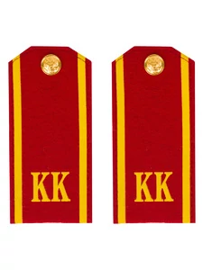 Погоны Кадетский корпус КК, суконные с фурнитурой в комплекте. Форма погон: Трапеция. Поле: Красное. Длина: 12 см. Ширина: 5 см. Материал: Сукно, плотный картон ,пластизоль. Курсантские погоны КК для Минобрнауки подходят как к форме кадетов для мальчиков, так и к форме кадетов для девочек. Основные характеристики погон красных КК: длинна изделия составляет 12 см; при изготовлении применяется пластизоль; имеют высокий уровень износостойкости; многоразовое использование; со временем не меняют цвет и уровень прочности; нанесена надпись “КК” и две линии по бокам желтого цвета; имеют форму шестиугольника.
