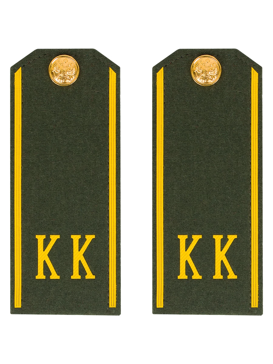 Погоны Кадетский корпус КК, суконные с фурнитурой в комплекте. Форма погон: Трапеция. Поле: Зеленое. Длина: 12 см. Ширина: 5 см. Материал: Сукно, плотный картон ,пластизоль. Курсантские погоны КК для Минобрнауки подходят как к форме кадетов для мальчиков, так и к форме кадетов для девочек. Основные характеристики: зеленые погоны КК, длинна изделия составляет 12 см; при изготовлении применяется пластизоль; имеют высокий уровень износостойкости; многоразовое использование; со временем не меняют цвет и уровень прочности; нанесена надпись “КК” и две линии по бокам желтого цвета; имеют форму шестиугольника.
