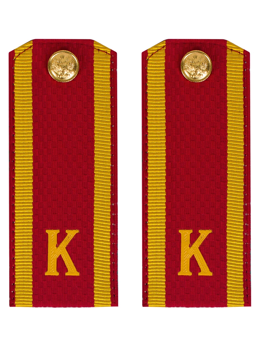 Погоны курсантские К красные, галунные с фурнитурой в комплекте. Форма погон: Трапеция. Поле: Красное Длина: 13 см. Ширина: 5 см. Материал: Галун, картон ,пластизоль. Погоны курсант К красные для Минобрнауки подходят как к форме курсантов для мальчиков, так и к форме курсантов для девочек. Основные характеристики погон красных К: длинна изделия составляет 13 см; при изготовлении применяется пластизоль; имеют высокий уровень износостойкости; многоразовое использование; со временем не меняют цвет и уровень прочности; нанесена надпись “К” и две линии по бокам желтого цвета; имеют форму шестиугольника.