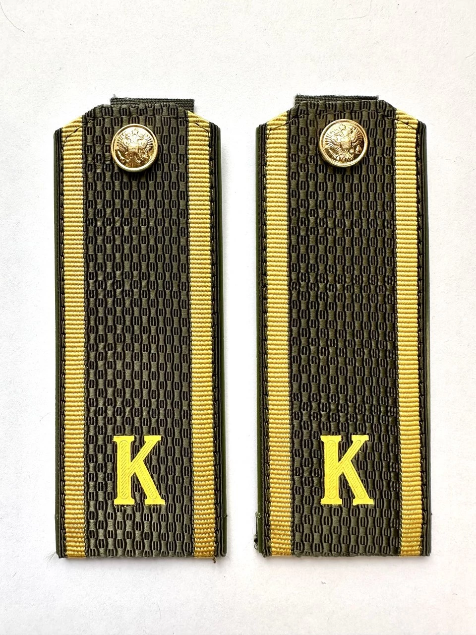 Погоны МО курсантские К галун 13,5х5см пластик цвет оливковый (реквизит). Подложка выполнена из пластика, который защищает изделия от деформации во время носки. Для крепления погон к форме на изнаночной стороне пришита шлевка из ткани. Лицевая поверхность обстрочена красивым тонким шелковым галуном.
