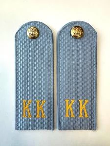 Размер 13 на 4,5 см. Погоны полиции КК кадетские изготовлены в форме прямоугольника, верхние края которого закруглены. Подложка выполнена из картона, который защищает изделия от деформации во время носки. Для крепления погон к форме на изнаночной стороне пришита шлевка из ткани. Лицевая поверхность обстрочена красивым тонким шелковым галуном голубого цвета. Кадетская и курсантская форма.