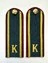Размер 14 на 4,5 см. Погоны К курсантские изготовлены в форме прямоугольника, верхние края которого закруглены. Подложка выполнена из картона, который защищает изделия от деформации во время носки. Для крепления погон к форме на изнаночной стороне пришита шлевка из ткани. Лицевая поверхность обстрочена тонким шелковым галуном. Кадетская и курсантская форма.