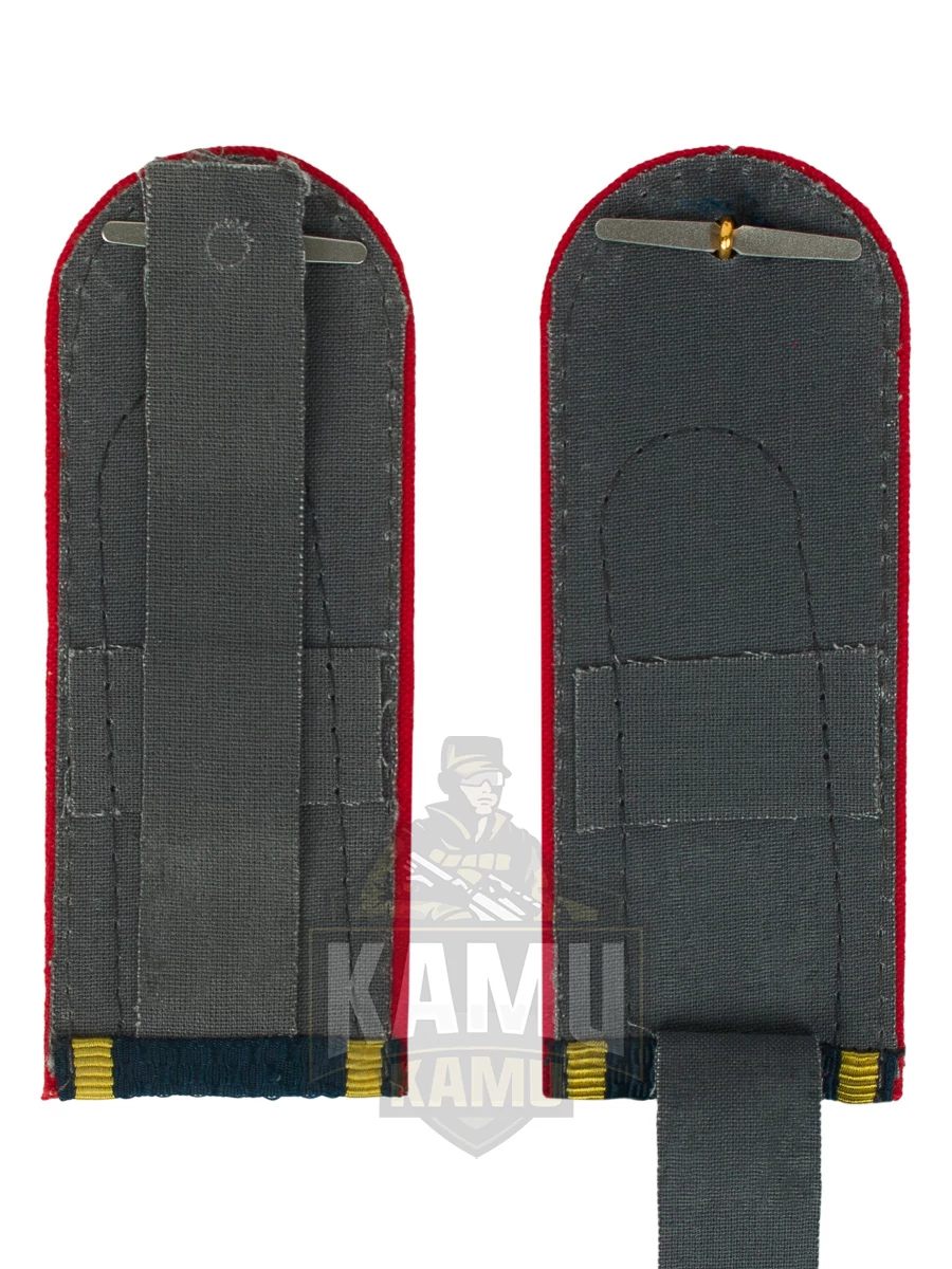 Размер 12. Погоны полиции КК кадетские изготовлены в форме прямоугольника, верхние края которого закруглены. Подложка выполнена из картона, который защищает изделия от деформации во время носки. Для крепления погон к форме на изнаночной стороне пришита шлевка из ткани. Лицевая поверхность обстрочена красивым тонким шелковым галуном темно-синего цвета. Кадетская и курсантская форма.