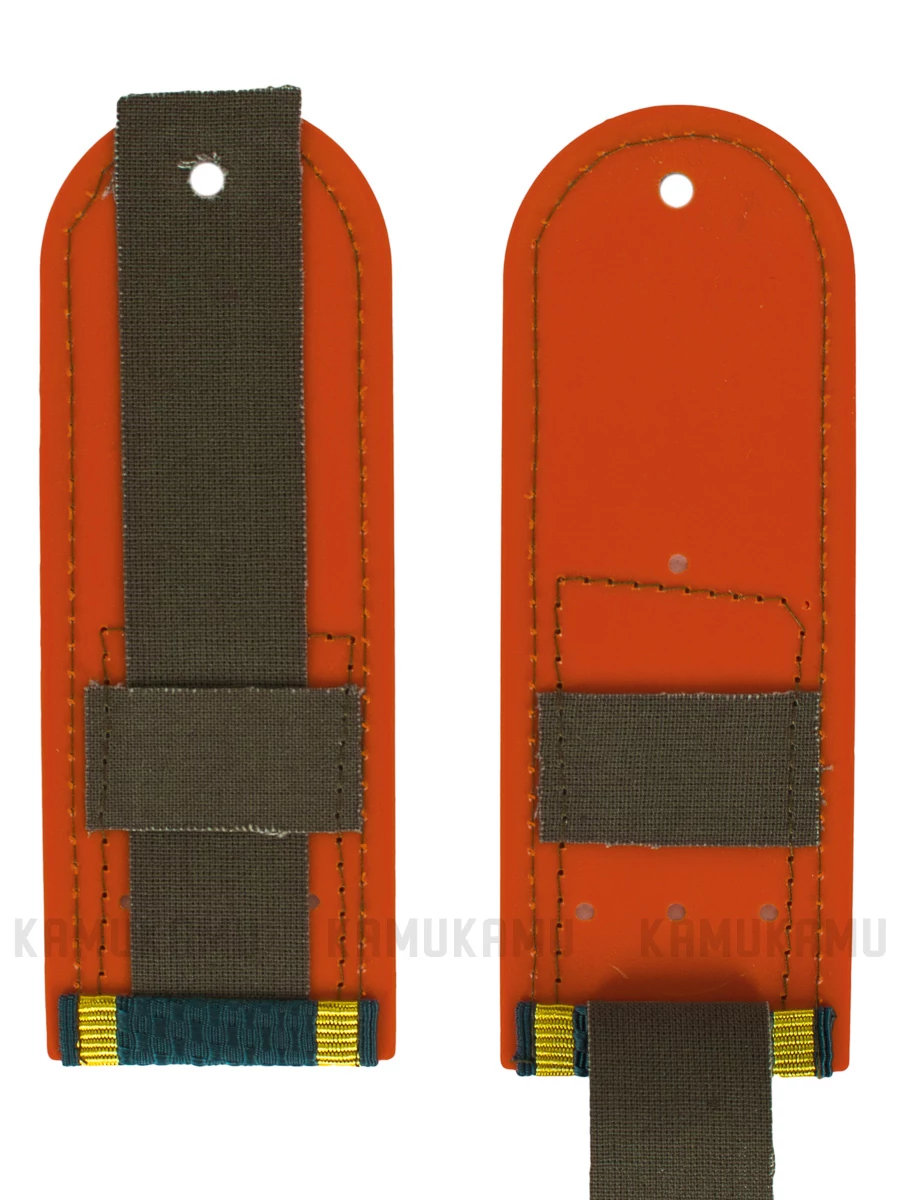Погоны Курсант МЧС Старший Сержант пластик в сборе с фурнитурой, Размер 14 на 5 см, изготовлены в форме прямоугольника, верхние края которого закруглены. Подложка выполнена из пластика, который защищает изделия от деформации во время носки. Для крепления погон к форме на изнаночной стороне пришита шлевка из ткани. Лицевая поверхность обстрочена красивым тонким шелковым галуном оранжевого цвета.