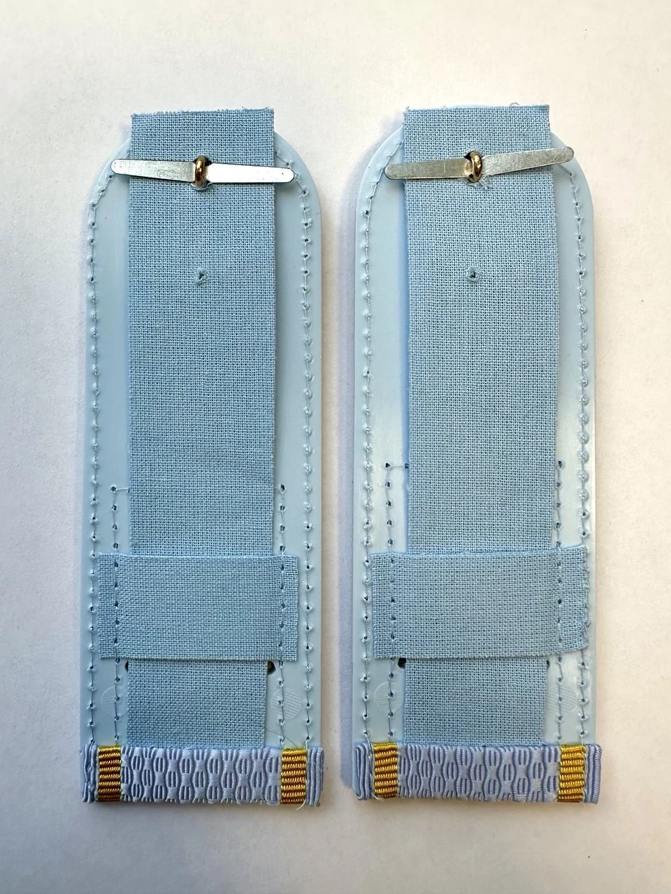 Погоны Курсант Полиции пластик в сборе с фурнитурой. Размер 14 см, изготовлены в форме прямоугольника, верхние края которого закруглены. Подложка выполнена из картона, который защищает изделия от деформации во время носки. Для крепления погон к форме на изнаночной стороне пришита шлевка из ткани.