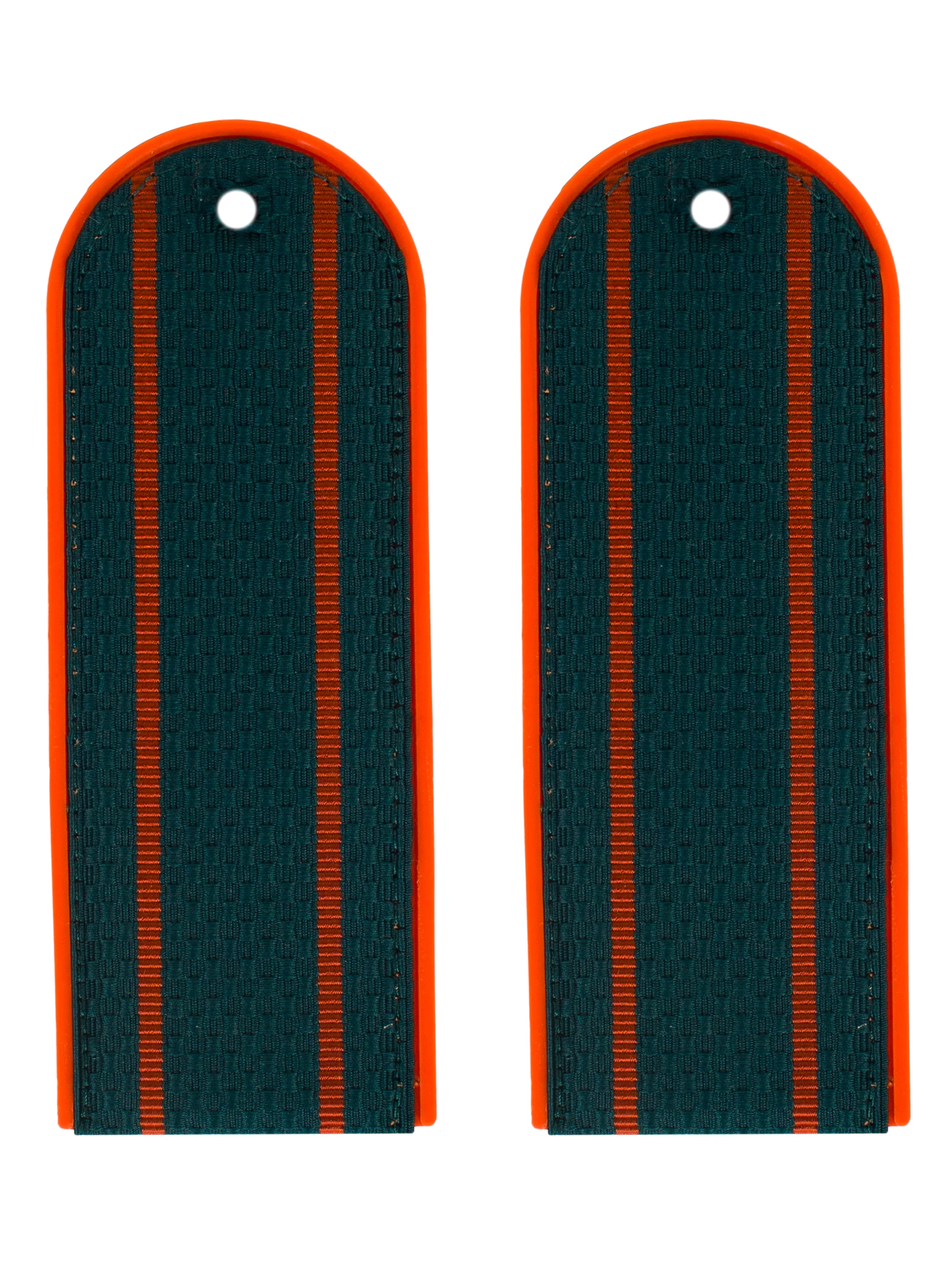 Погоны МЧС на китель 14х5см без фурнитуры. Основа: ПЛАСТИК. Материал: Погонная лента (полиэстер 100%). Ведомство: МЧС. Цвет: Сине-зеленый (уставной МЧС), Оранжевый. Погоны МЧС изготовлены в форме прямоугольника, верхние края которого закруглены. Подложка выполнена из пластика, который защищает изделия от деформации во время носки. Для крепления погон к форме на изнаночной стороне пришита шлевка из ткани. Лицевая поверхность обстрочена красивым тонким шелковым галуном цвета морской волны. Окантовка погон выполнена в оранжевом цвете.