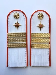 Погоны МЧС на рубашку 14х5 см (в сборе) укомплектованные с фурнитурой. Основа: ПЛАСТИК. Материал: Погонная лента (полиэстер 100%). Ведомство: МЧС. Цвет: белый (уставной МЧС), Оранжевый. Погоны МЧС изготовлены в форме прямоугольника, верхние края которого закруглены. Подложка выполнена из пластика, который защищает изделия от деформации во время носки. Для крепления погон к форме на изнаночной стороне пришита шлевка из ткани. Лицевая поверхность обстрочена красивым тонким шелковым галуном цвета морской волны. Окантовка погон выполнена в оранжевом цвете.