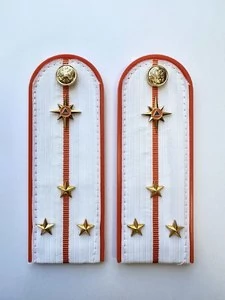 Погоны МЧС на рубашку 14х5 см (в сборе) укомплектованные с фурнитурой. Основа: ПЛАСТИК. Материал: Погонная лента (полиэстер 100%). Ведомство: МЧС. Цвет: белый (уставной МЧС), Оранжевый. Погоны МЧС изготовлены в форме прямоугольника, верхние края которого закруглены. Подложка выполнена из пластика, который защищает изделия от деформации во время носки. Для крепления погон к форме на изнаночной стороне пришита шлевка из ткани. Лицевая поверхность обстрочена красивым тонким шелковым галуном цвета морской волны. Окантовка погон выполнена в оранжевом цвете.