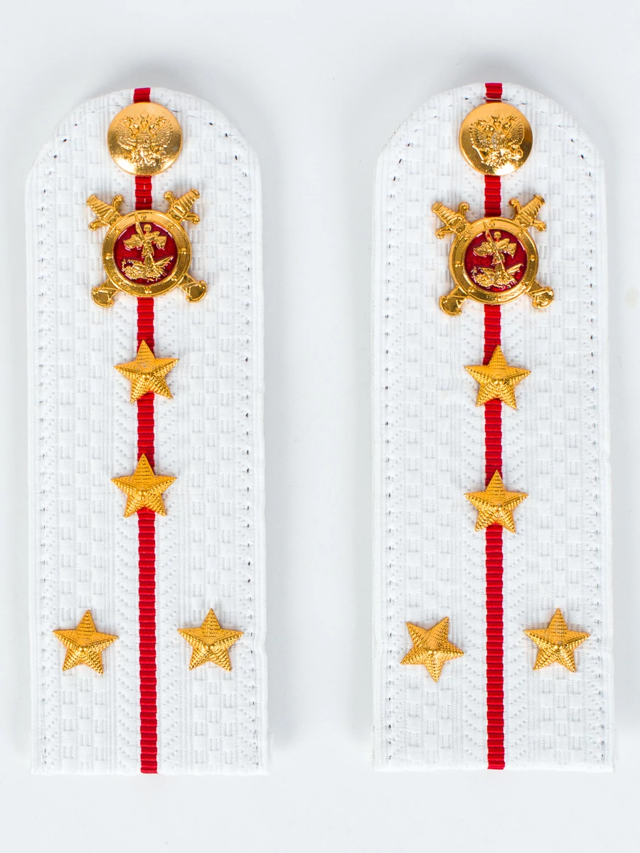 Погоны Полиции на рубашку белые 13 см звание капитан. Цвет: белые. Материал: 100% полиэстер. Основа: картон. Фурнитура: металл. Размер: 13 см на 5 см. Форма: Полукруг.