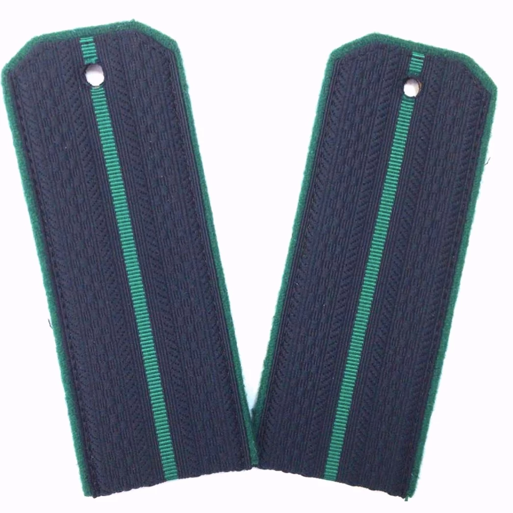 Погоны Пограничной службы ПС ФСБ в сборе картон на куртку. Размер 14 см на 5,5 см. Толщина 1 мм. Погоны ПС ФСБ ткань жаккард темно-синего цвета с зеленым просветом на картонной основе. При креплении жестких погон необходимо использовать застежку-кляймер. Необходимо продеть ленту погона в специальные петли на уставной форме.