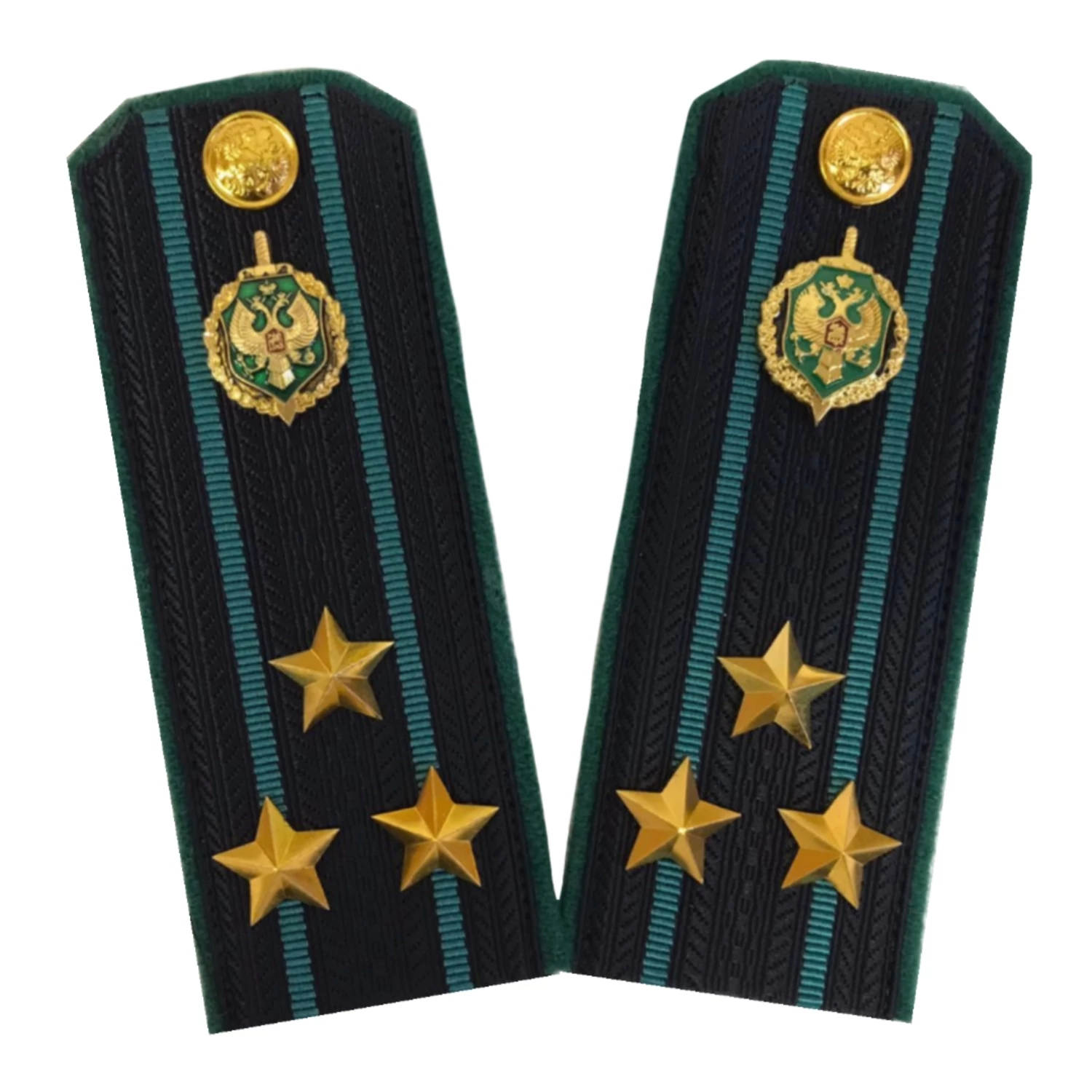 Размер 14 см на 5,5 см. Толщина 1 мм. Погоны ПС ФСБ ткань жаккард темно-синего цвета с зеленым просветом на картонной основе. Погоны идут сразу в сборе с металлической фурнитурой из латуни и застежкой кляммером. При креплении жестких погон необходимо использовать застежку-кляймер. Необходимо продеть ленту погона в специальные петли на уставной форме.