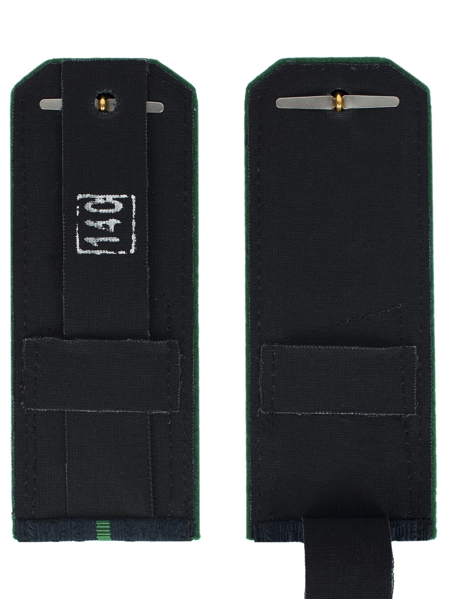 Размер 14 см на 5,5 см. Толщина 1 мм. Погоны ПС ФСБ ткань жаккард темно-синего цвета с зеленым просветом на картонной основе. Погоны идут сразу в сборе с металлической фурнитурой из латуни и застежкой кляммером. При креплении жестких погон необходимо использовать застежку-кляймер. Необходимо продеть ленту погона в специальные петли на уставной форме.