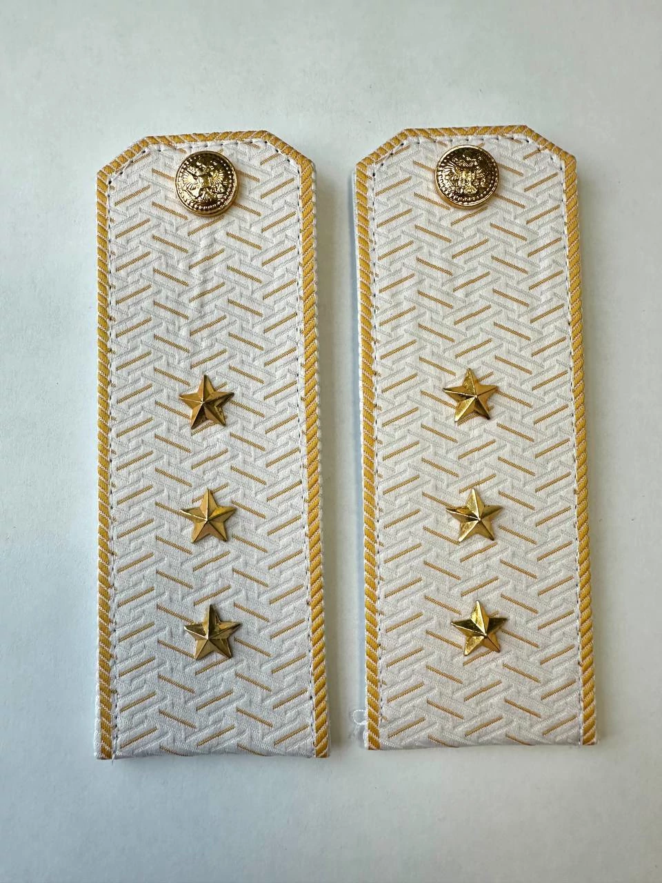 Погоны Таможенной службы белые звание Старший Прапорщик. Размер 14х5см. Погоны для Федеральной таможенной службы (ФТС) белые продаются в сборе с фурнитурой, готовы к использованию. Основа - картон. Способ крепления: с помощью специальных шлевок, через которые продевается лента погона с изнаночной стороны. Погоны ФТС нового образца, изготовлены согласно Приказа ФТС РФ от 23.11.2020 N 1005 "ОБ УТВЕРЖДЕНИИ ПОРЯДКА НОШЕНИЯ ФОРМЕННОЙ ОДЕЖДЫ ДОЛЖНОСТНЫМИ ЛИЦАМИ ТАМОЖЕННЫХ ОРГАНОВ РОССИЙСКОЙ ФЕДЕРАЦИИ".
