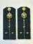 Размер 14 см на 5,5 см. Толщина 1 мм. Погоны ПС ФСБ ткань жаккард темно-синего цвета с зеленым просветом на пластиковой основе. Погоны идут сразу в сборе с металлической фурнитурой из латуни и застежкой кляммером. При креплении жестких погон необходимо использовать застежку-кляймер. Необходимо продеть ленту погона в специальные петли на уставной форме.