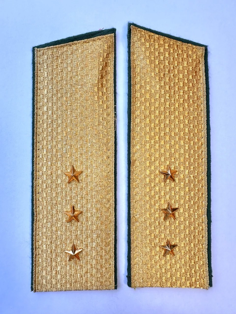 Погоны Пограничной службы в сборе картон Старший Прапорщик золотые - это не только символ власти и уважения, но и неотъемлемая часть формы каждого сотрудника. Этот цвет символизирует высокое звание и долгую службу на благо Родины. Зеленый цвет окантовки означает защиту границ и природы, которые являются основными задачами Пограничной службы.