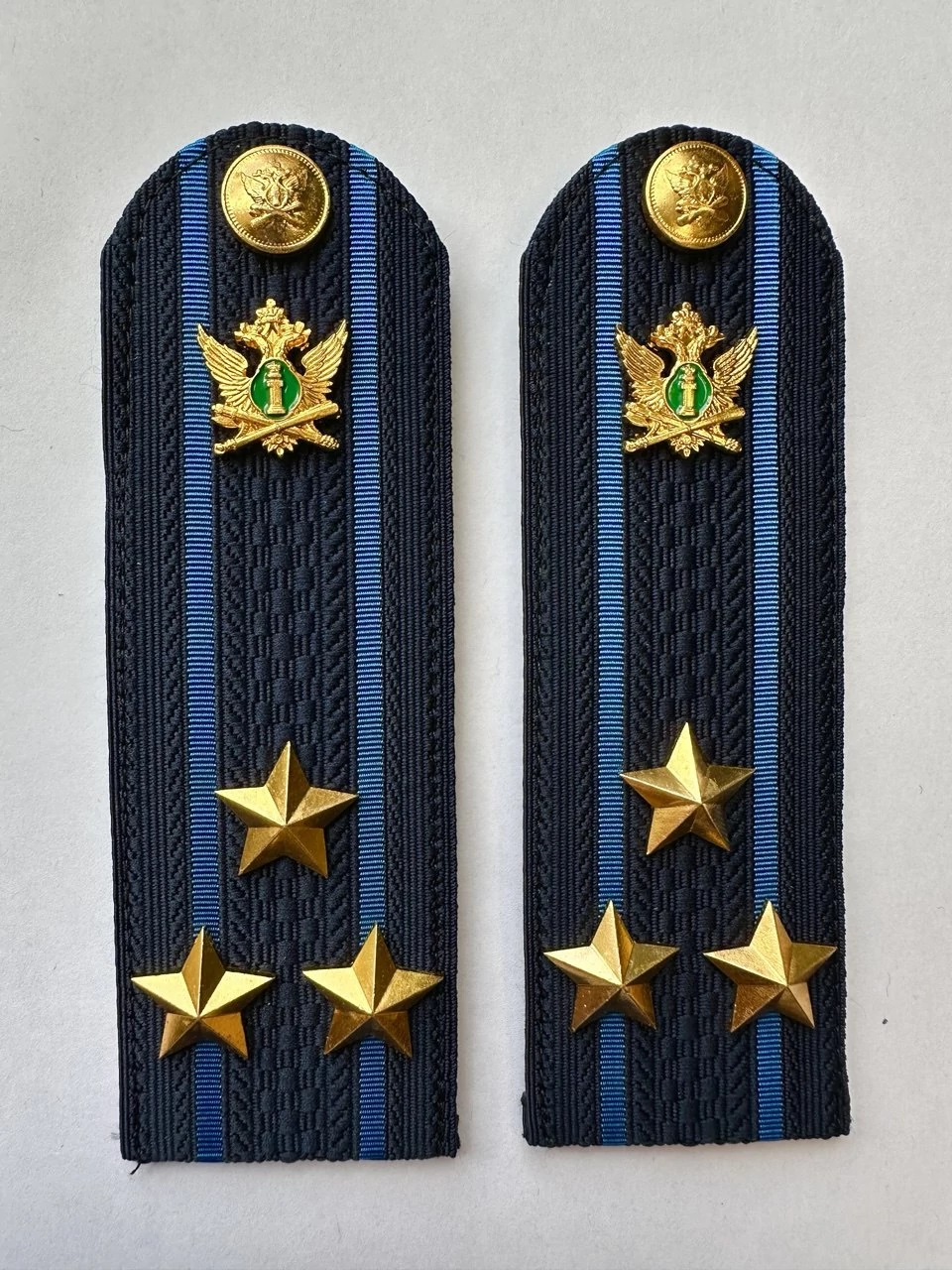 Погоны ФССП с фурнитурой темно-синие звание Полковник картон 14х4,5см. Погоны изготовлены из погонной ленты темно-синего цвета с голубым просветом. Край "полукруг". Продаются парами ( 2шт). Погоны предназначаются для ношения Федеральной службой судебных приставов.