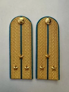 Погоны ФССП парадные золотые с фурнитурой звание Старший Лейтенант Картон (реквизит). Погоны изготовлены из погонной ленты золотого цвета с голубым кантом и просветами. Край "полукруг". Продаются парами ( 2шт). Погоны предназначаются для ношения Федеральной службой судебных приставов. Размер погон 14см.