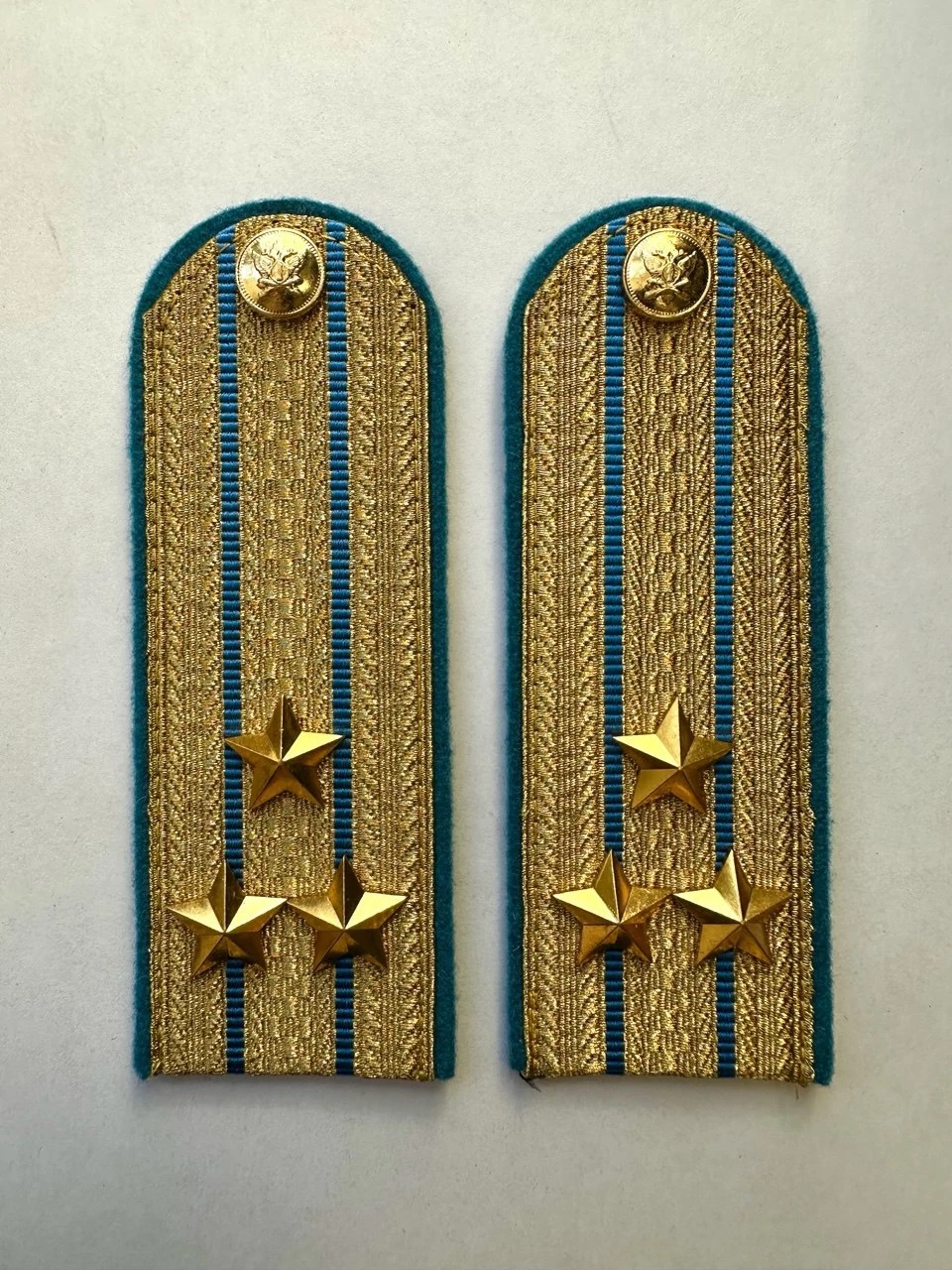 Погоны ФССП парадные золотые с фурнитурой звание Полковник Картон (реквизит). Погоны изготовлены из погонной ленты золотого цвета с голубым кантом и просветами. Край "полукруг". Продаются парами ( 2шт). Погоны предназначаются для ношения Федеральной службой судебных приставов. Размер погон 14см.