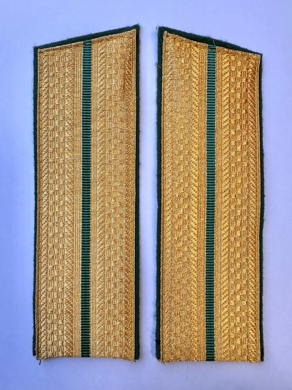 Погоны парадные золотого цвета для Пограничной службы ФСБ один просвет с кляммерами в комплекте, верх - трапеция. Основа - картон Материал: вискоза,галун,шерсть Способ крепления: пришивной Длина: 14 см Ширина: 5,2 см.