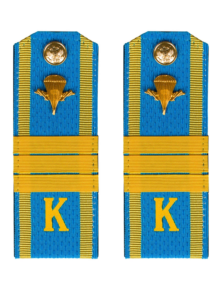 Погоны курсантские ВДВ с фурнитурой голубые сержант Пластиковые. Погоны полностью укомплектованы фурнитурой. Погоны ВДВ изготовлены из голубой погонной ленты с нашивным желтым галуном (лентой). С оборотной стороны имеются хлястики (полоски ткани) для быстрого крепления на куртку офисной (повседневной) формы. Если погоны будут пришиваться, то хлястик можно отрезать ножницами. На каждом погоне предусмотрено отверстие под пуговицу.