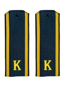 Погоны курсантские ВВС, ВДВ, ВКС пластиковые темно-синие. Погоны изготовлены из темно-синей погонной ленты с нашивным желтым галуном (лентой). С оборотной стороны имеются хлястики (полоски ткани) для быстрого крепления на куртку офисной (повседневной) формы. Если погоны будут пришиваться, то хлястик можно отрезать ножницами. На каждом погоне предусмотрено отверстие под пуговицу.