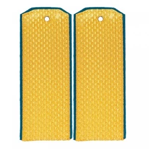 Погоны изготовлены из погонной ленты золотистого цвета с голубым (синим) кантом. Край &39;Трапеция&39;. На каждом погоне предусмотрено отверстие под пуговицу.