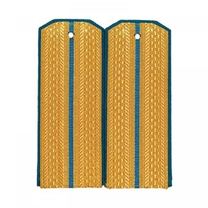 Погоны изготовлены из погонной ленты золотистого цвета с голубым (синим) кантом. Край &39;Трапеция&39;. На каждом погоне предусмотрено отверстие под пуговицу.
