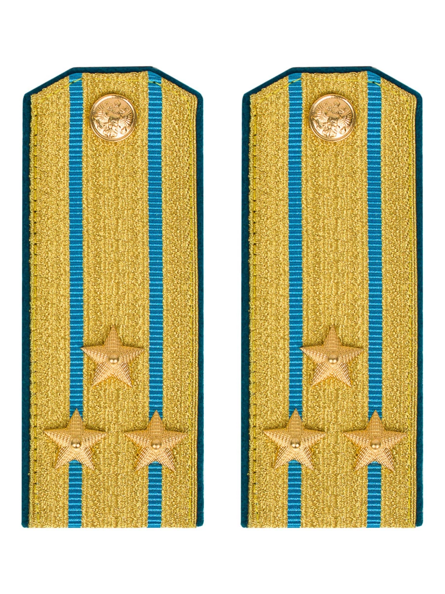 Погоны ВДВ, ВКС, ВВС парадные золотые с фурнитурой звание Полковник Картон. В зависимости от партии погоны могут быть с хлястиком на оборотной стороне для крепления, либо без, это не является браком! Погоны изготовлены из золотистой погонной ленты с голубыми просветами. Погоны укоплектованны звездочками, пуговицами, клямерами. Каждая пара упакована в индивидуальный пакетик.