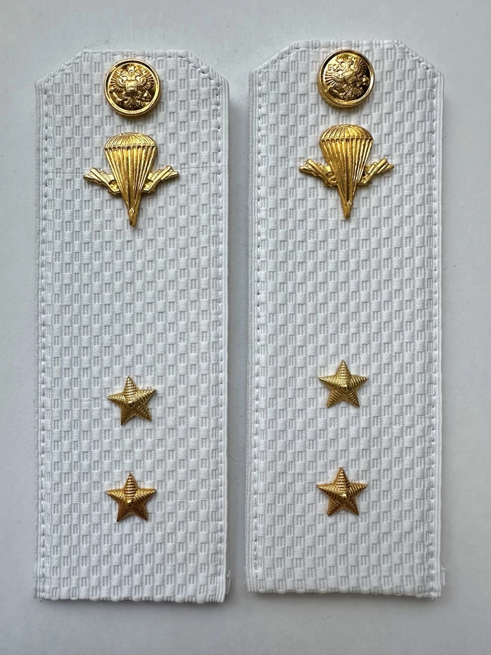 Погоны ВДВ с фурнитурой белые Прапорщик КАРТОН