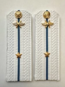 Погоны ВКС ВВС с фурнитурой белые Младший Лейтенант. Погоны полностью укомплектованы фурнитурой. Погоны ВКС ВВС изготовлены из белой ленты. С оборотной стороны имеются хлястики (полоски ткани) для быстрого крепления на куртку офисной (повседневной) формы. Если погоны будут пришиваться, то хлястик можно отрезать ножницами. На каждом погоне предусмотрено отверстие под пуговицу.