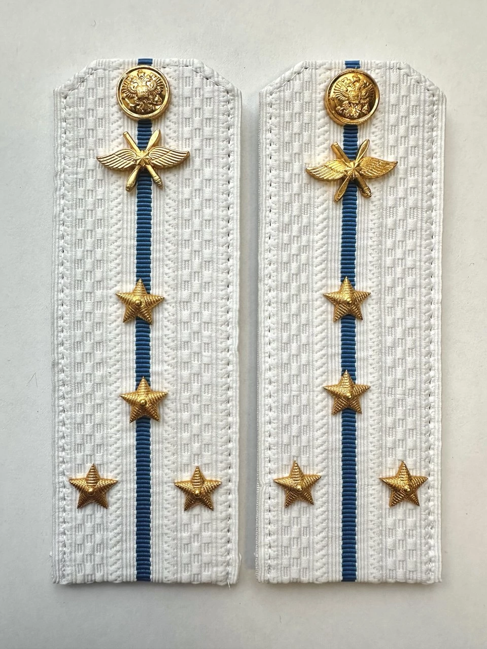 Погоны ВКС ВВС с фурнитурой белые Капитан КАРТОН