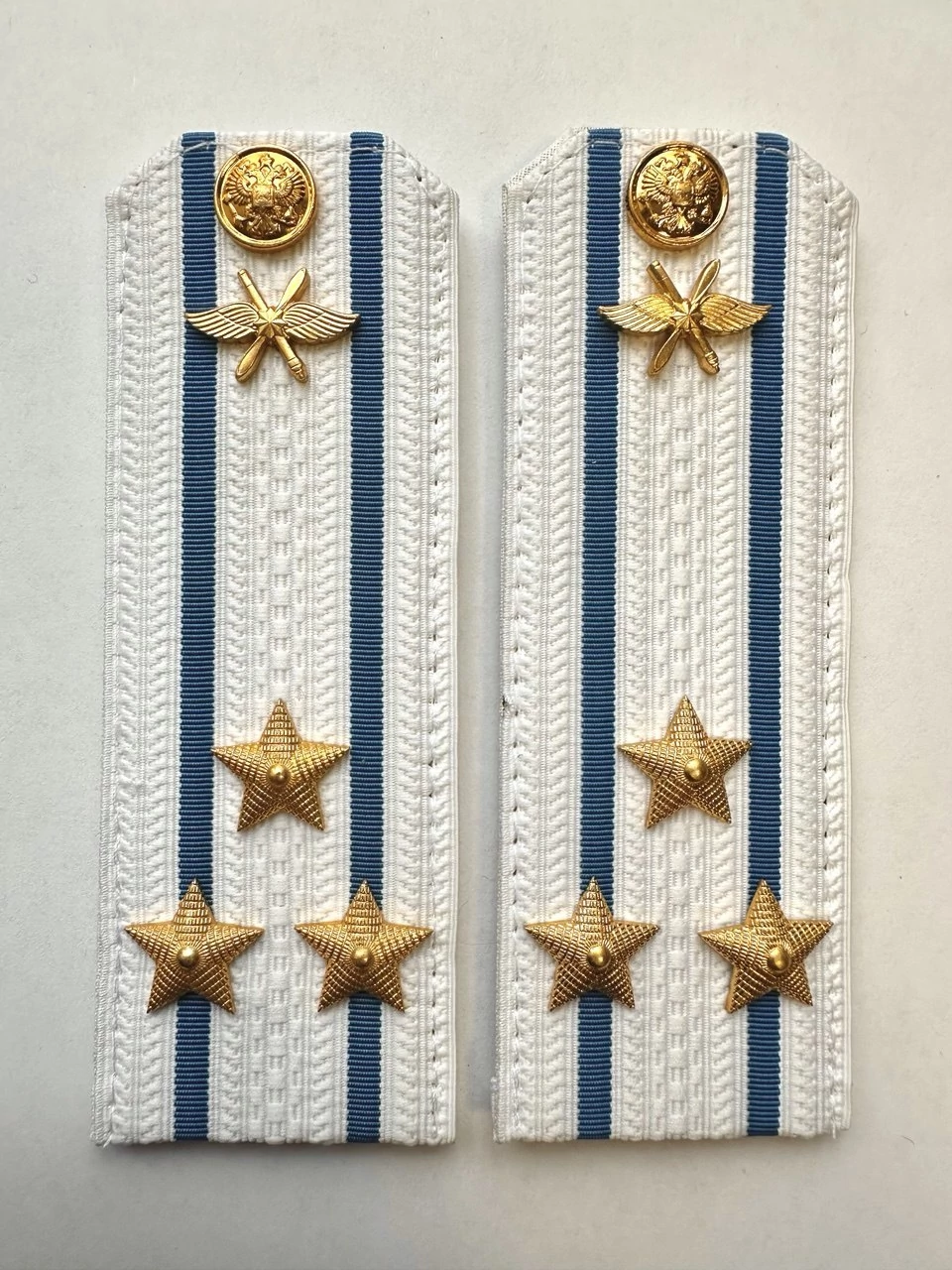 Погоны ВКС ВВС с фурнитурой белые Полковник КАРТОН